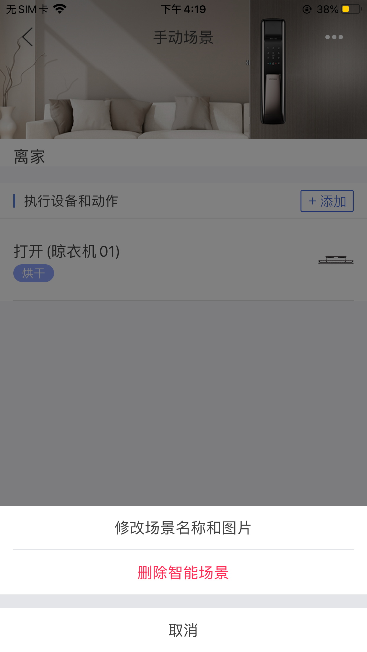 <手动场景>详情页:点击【】图标,在弹出的选项中点击【修改场景名称和图片】,进入 <修改场景>页。