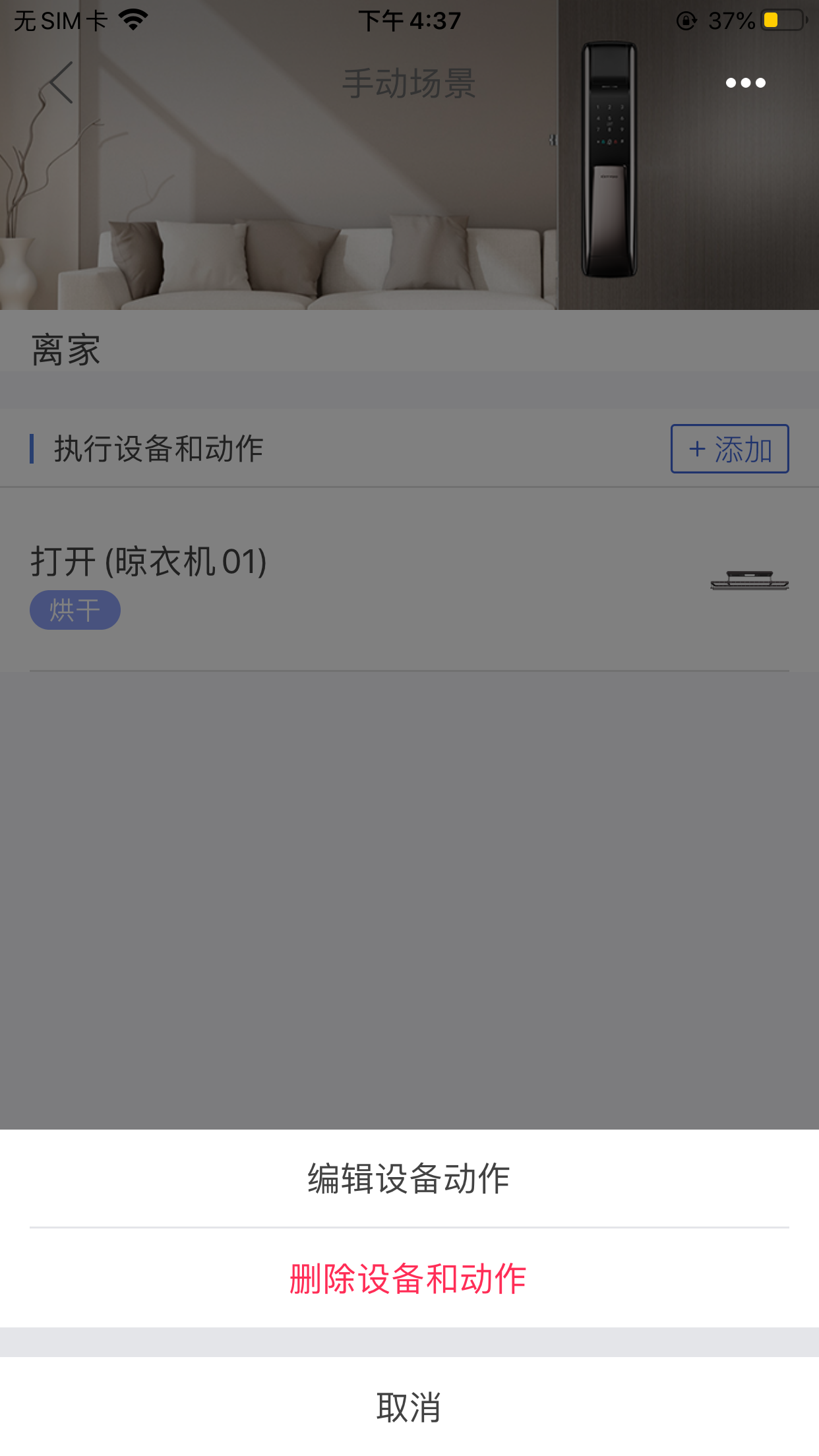<手动场景>详情页:选择需要修改的执行设备,可以进行执行内容修改和执行设备的删除操作。