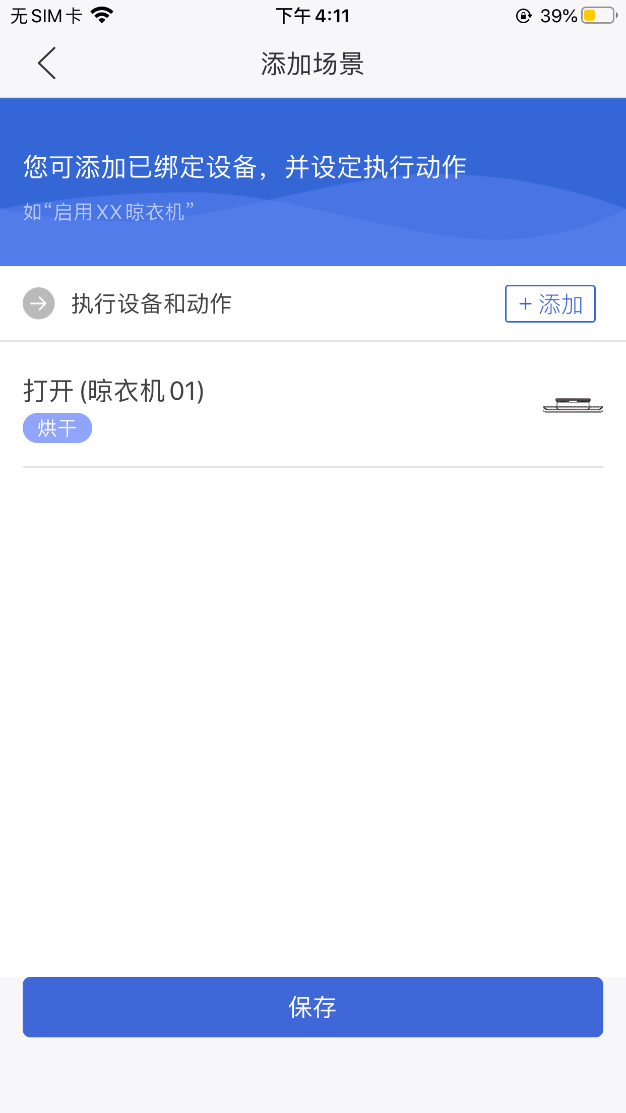 温馨提示:添加到手动场景的设备有:智能晾衣机,电动窗帘、1/2/3路开关、10A/16A插座,智能插座,摄像头,其他设备暂不支持。